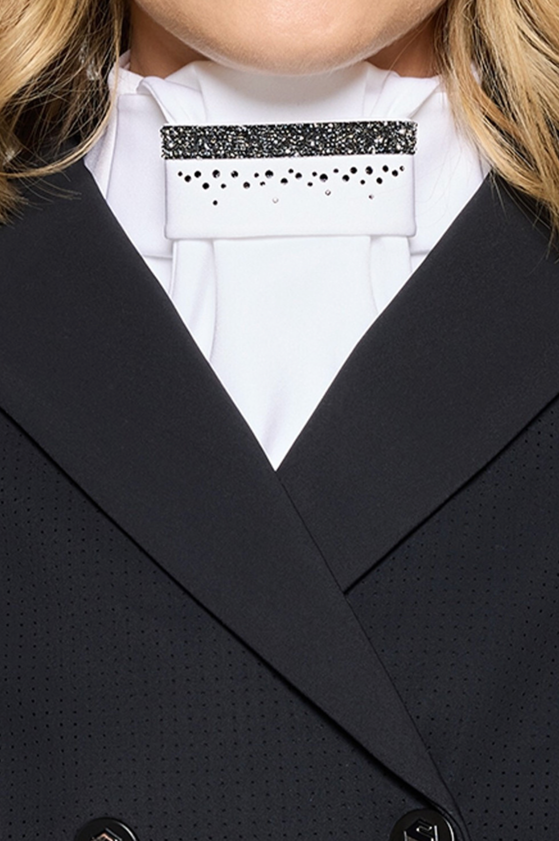 De Plastron Premium Rain is ontworpen om de amazone in alle omstandigheden bescherming en elegantie te bieden. De lange snit sluit mooi aan op het silhouet en garandeert comfort en bewegingsvrijheid. Gemaakt van ademende, elastische, slijtvaste en kreukvrije Italiaanse stof, is de plastron technisch perfect en gemakkelijk te onderhouden.