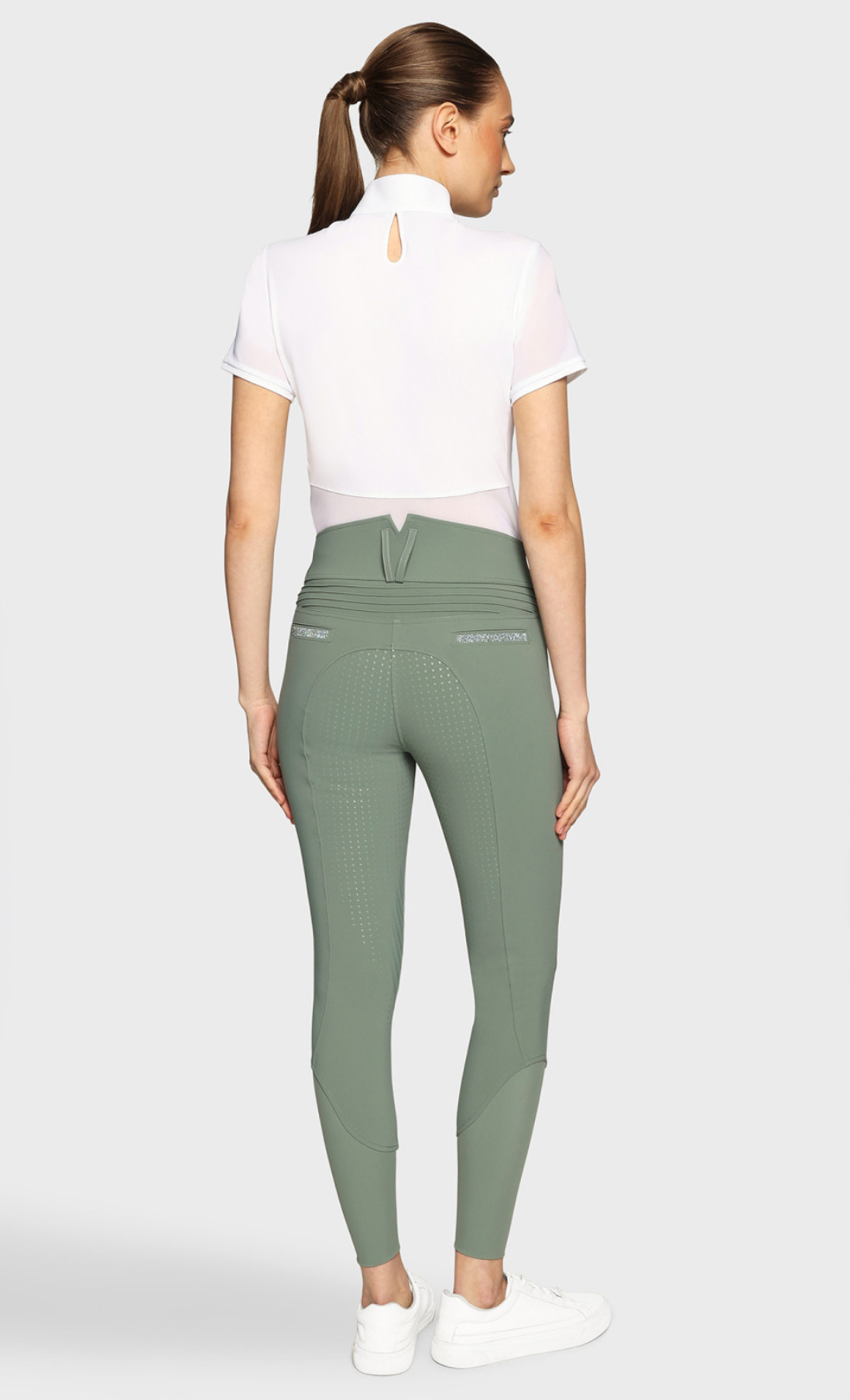 De Claranova is de maatstaf voor rijbroeken met een ultrahoge taille aan de achterkant, versterkt door een V-vormige snit en contrasterende stiksels. De snit accentueert het silhouet en biedt uitzonderlijke ondersteuning en optimale bewegingsvrijheid.