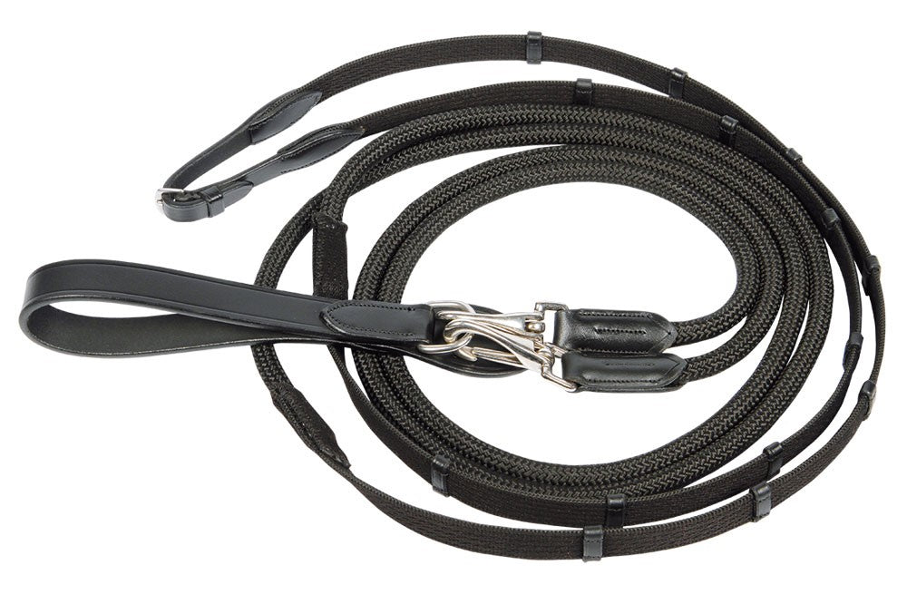 Inclusief een losse lederen singellus met D-ring. Om de slofteugel tijdens een training eenvoudig om- en af te kunnen klikken d.m.v. de muskatons.