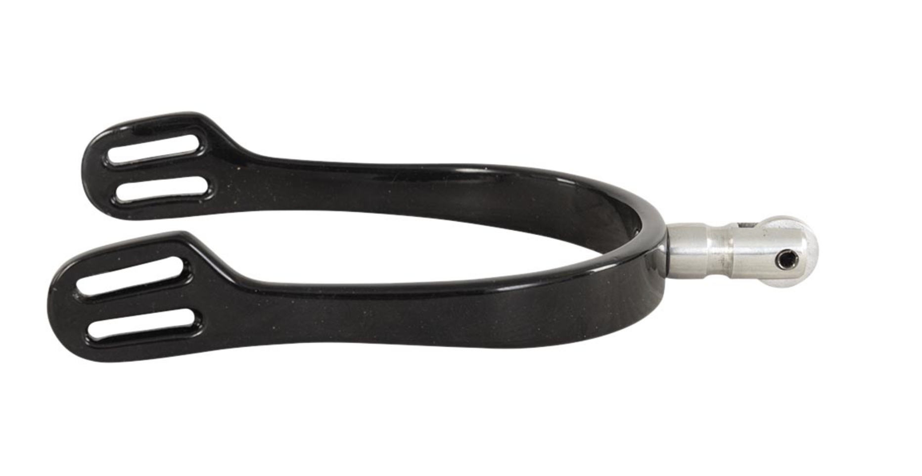Deze stevige en elegante sporen zijn gemaakt van aluminium en gaan dankzij de beschermende poedercoating lang mee. De set bevat één paar wielsporen en twee paar knopsporen in verschillende diktes. Het wieltje van het paar wielsporen is glad voor een zachtere inwerking, wat het geschikt maakt voor de gevoelige paardenhuid. De sporenknoppen kunnen eenvoudig in en uit de sporen gedraaid worden.
