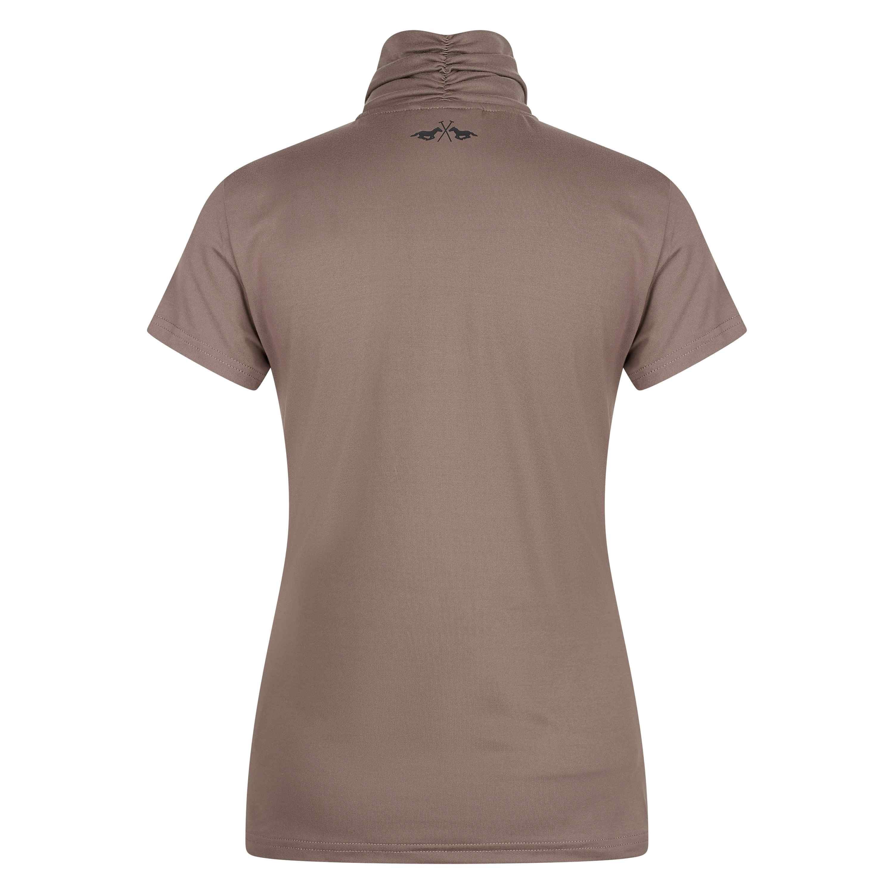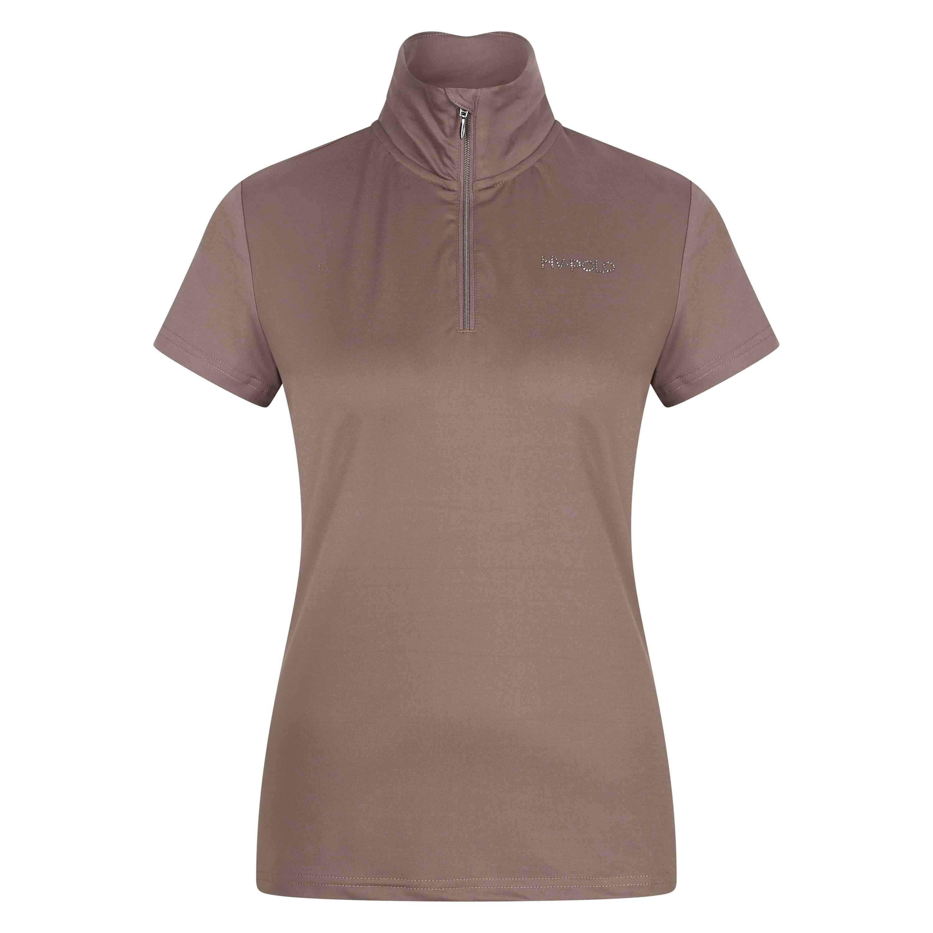 Deze stijlvolle kraag met halve ritssluiting biedt zowel comfort als een trendy uitstraling. De kleine plooitjes aan de achterkant van de kraag voegen een subtiele, verfijnde touch toe. Op de borst schittert een gedrukte logo-ontwerpen, versierd met strassteentjes voor een vleugje glamour. Het paardenlogo-artwork op de middenachter maakt het ontwerp compleet, waardoor dit item een perfecte mix van luxe en sportieve flair is. Een must-have voor elke modebewuste liefhebber van zowel elegantie als sportieve details.