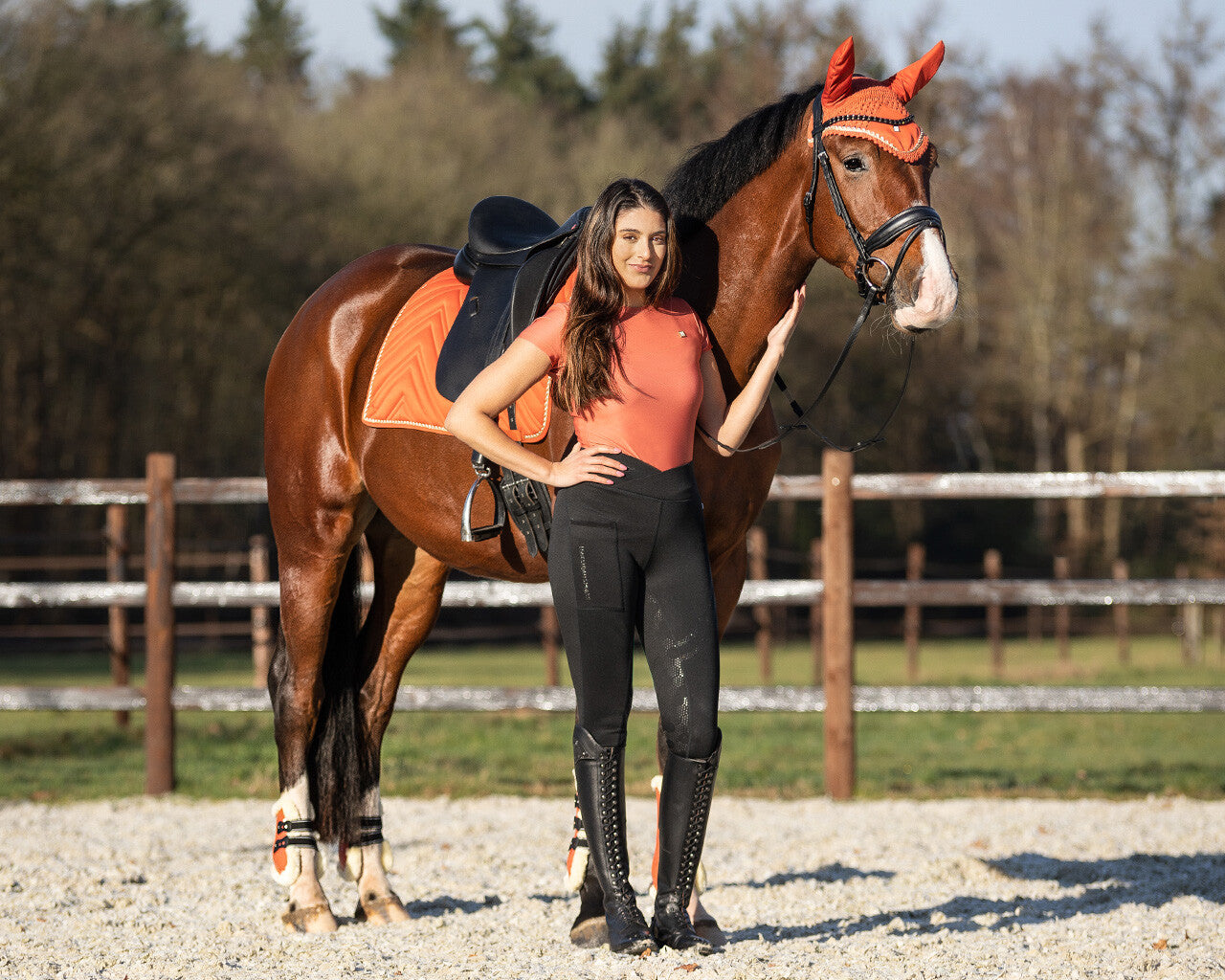 Hoe leuk is dit sportshirt uit de Menton collectie? Het shirt heeft een gouden patroon op de voorkant en is gemaakt van fijne stretchstof zodat je optimale bewegingsvrijheid hebt.