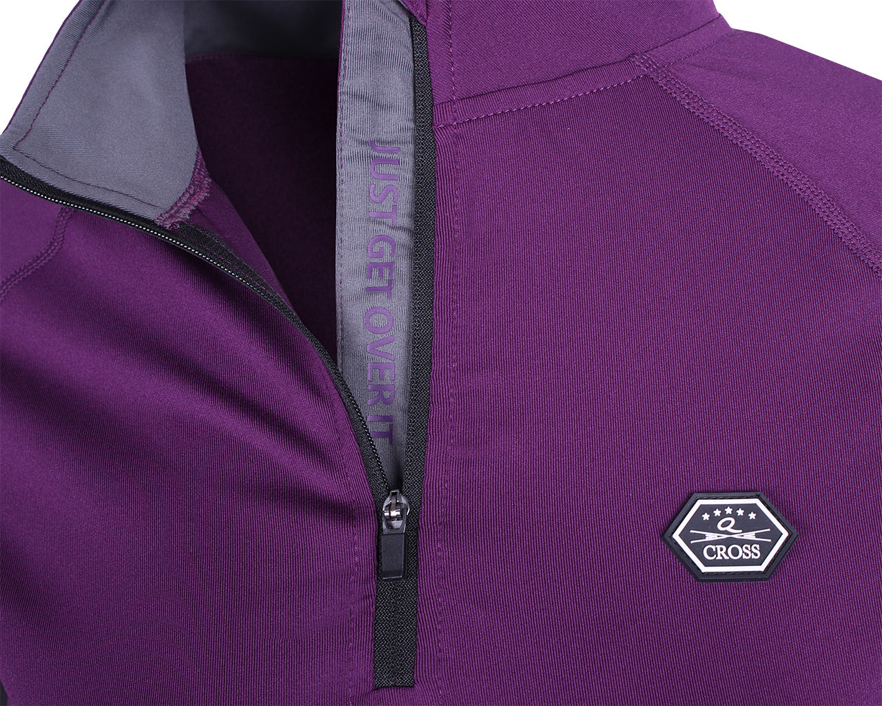 Dit sportshirt is perfect te dragen tijdens de training of wedstrijd omdat de stof goed ademt. De bovenarmen zijn gedecoreerd met sterren in contrasterende kleur. De tekst "Just get over it" achter de rits motiveert je voor iedere rit.