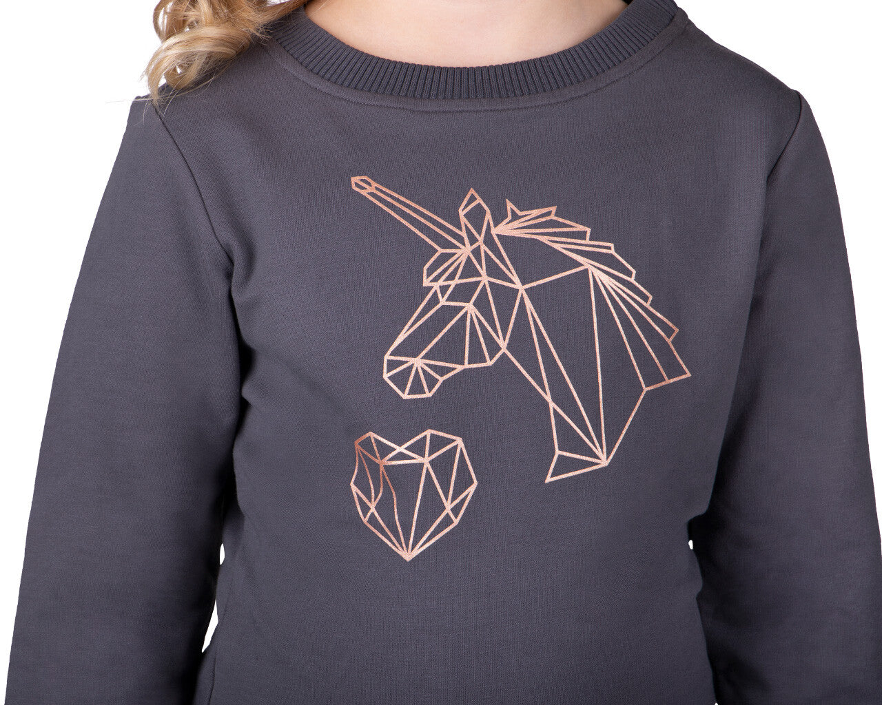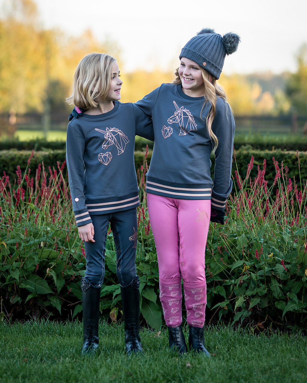 Let's get cozy met de Didy sweater. De grijze kleur in combinatie met de roségouden details maakt het een feestje om deze sweater te dragen. De sweater heeft net als de Didy rijlegging mooie contrasterend rosé glitterstrepen. En de roségouden eenhoorn op de voorkant maakt de sweater helemaal af.