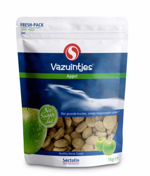 Vazuintjes Appel zijn gezonde caloriearme paardensnoepjes met mineralen, kruiden en een heerlijke appelsmaak.