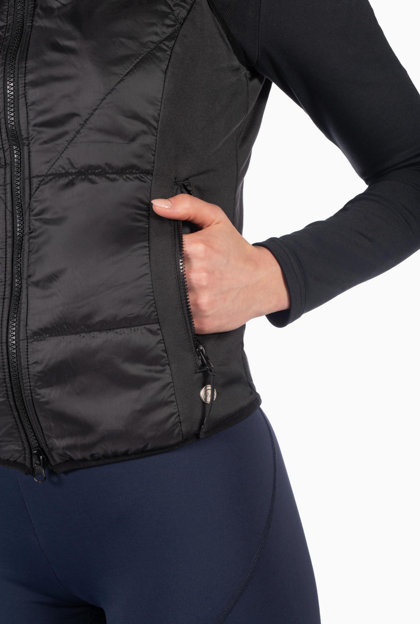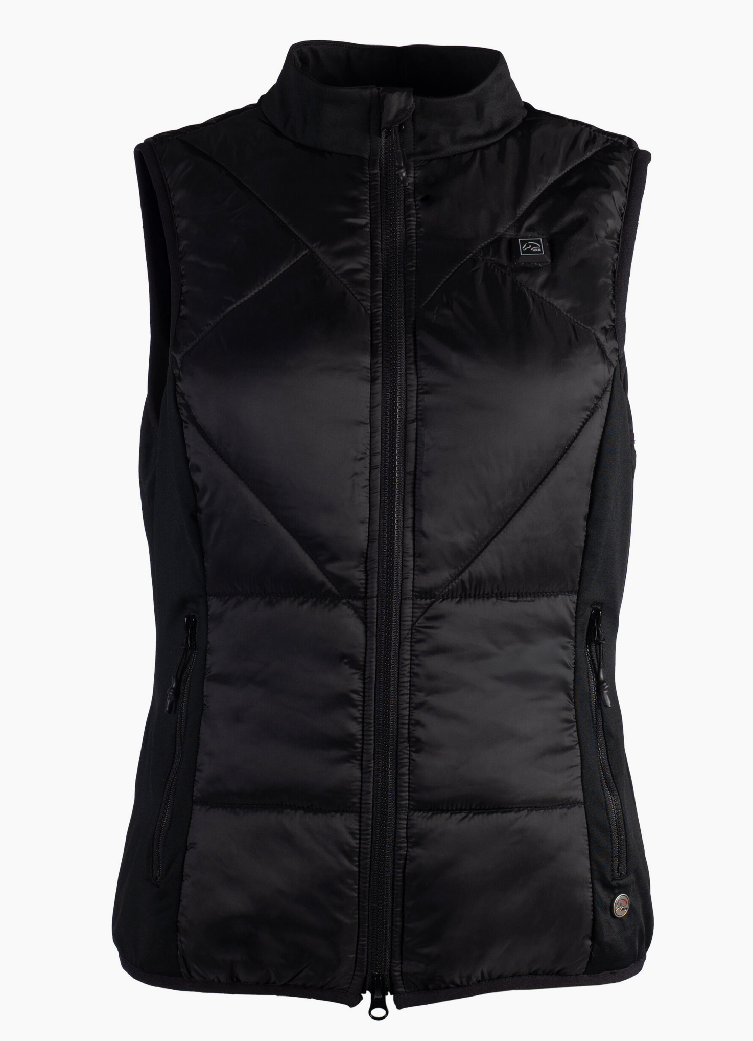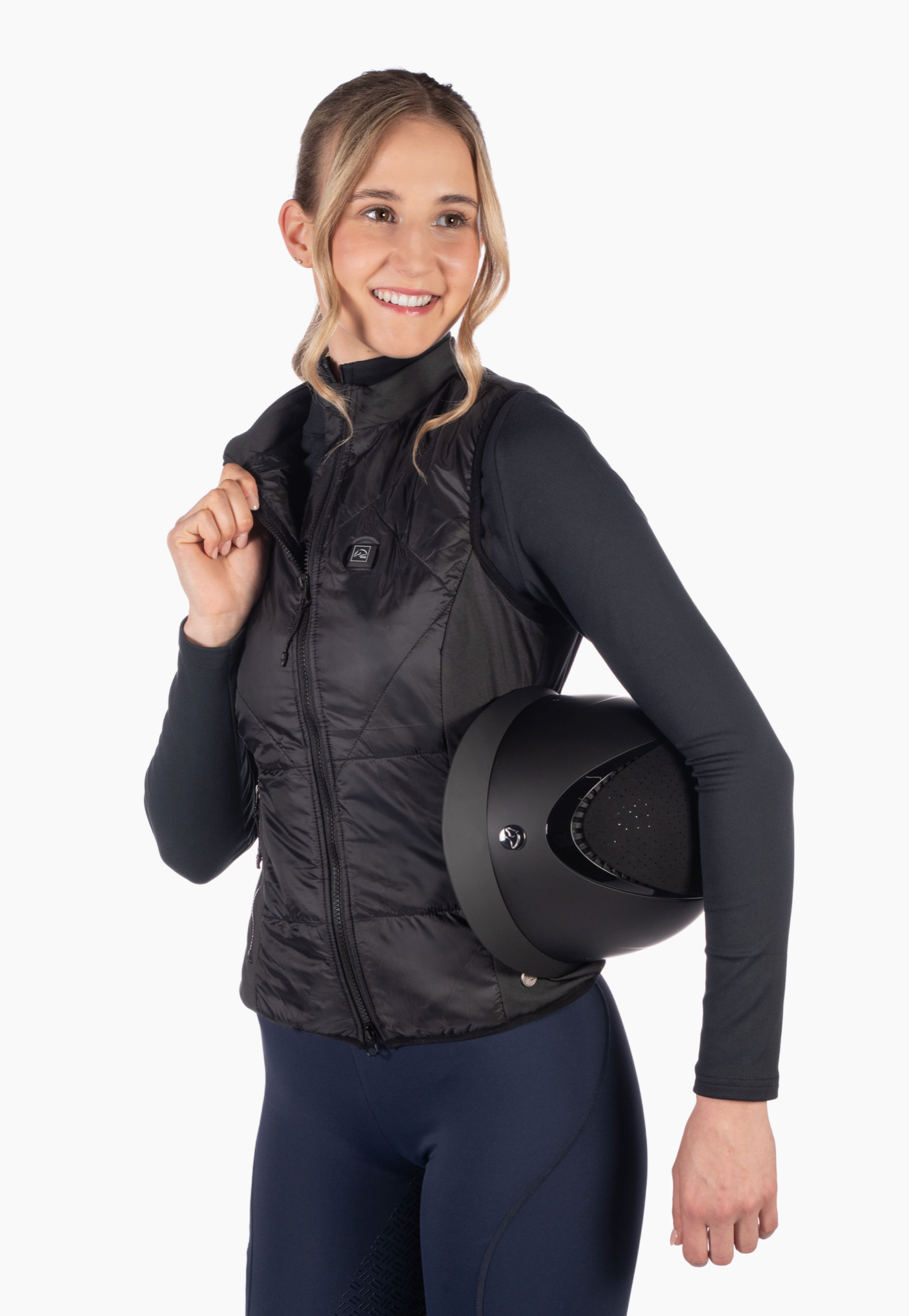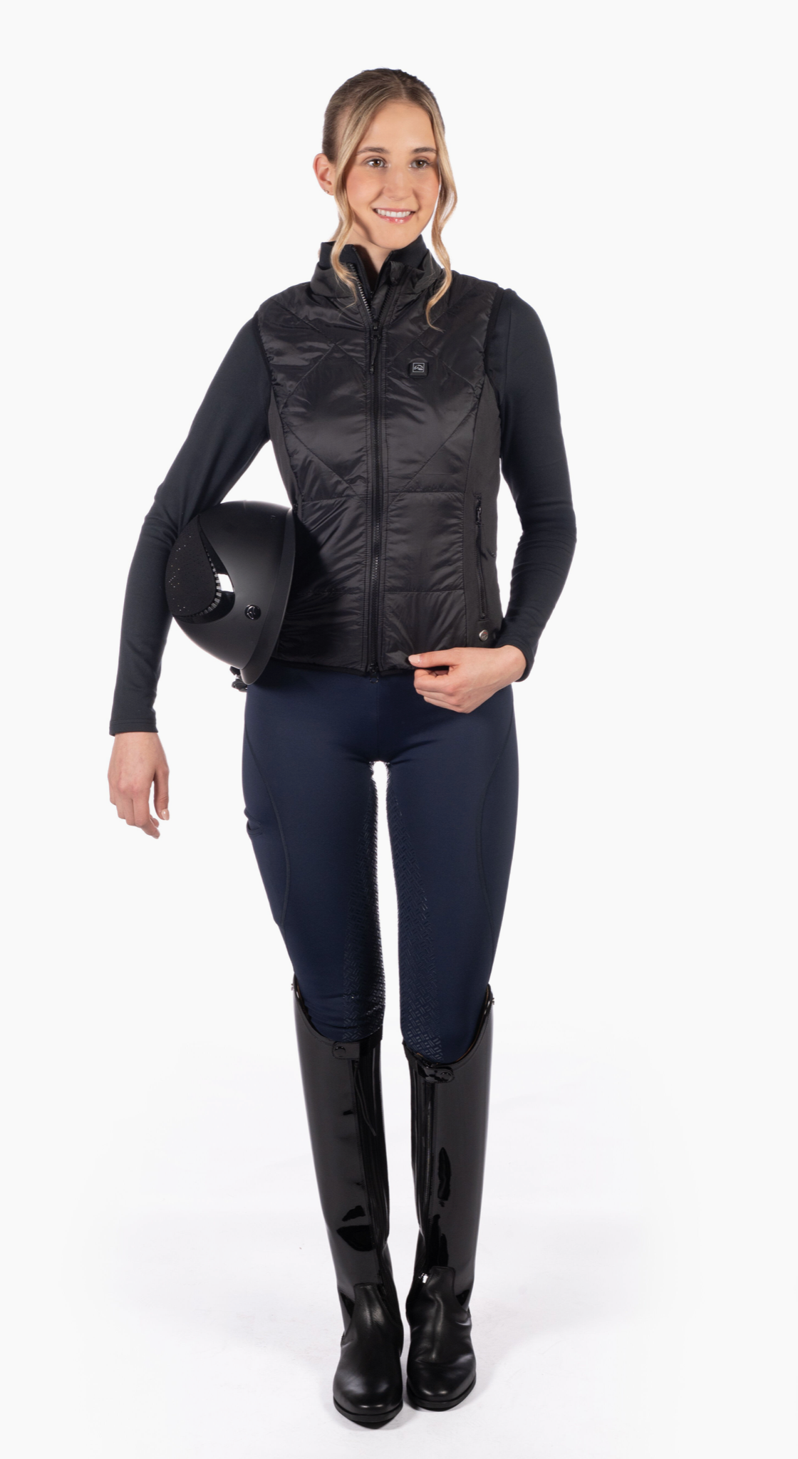 Blijf warm en comfortabel tijdens koude dagen met de HKM Slimline verwarmde bodywarmer. Deze lichtgewicht en stijlvolle bodywarmer is uitgerust met geïntegreerde warmte-elementen die met één druk op de knop voor aangename warmte zorgen. Perfect voor buitenactiviteiten, paardrijden of dagelijks gebruik. Dankzij het slanke design draag je hem zowel los als onder een jas, zonder extra volume.