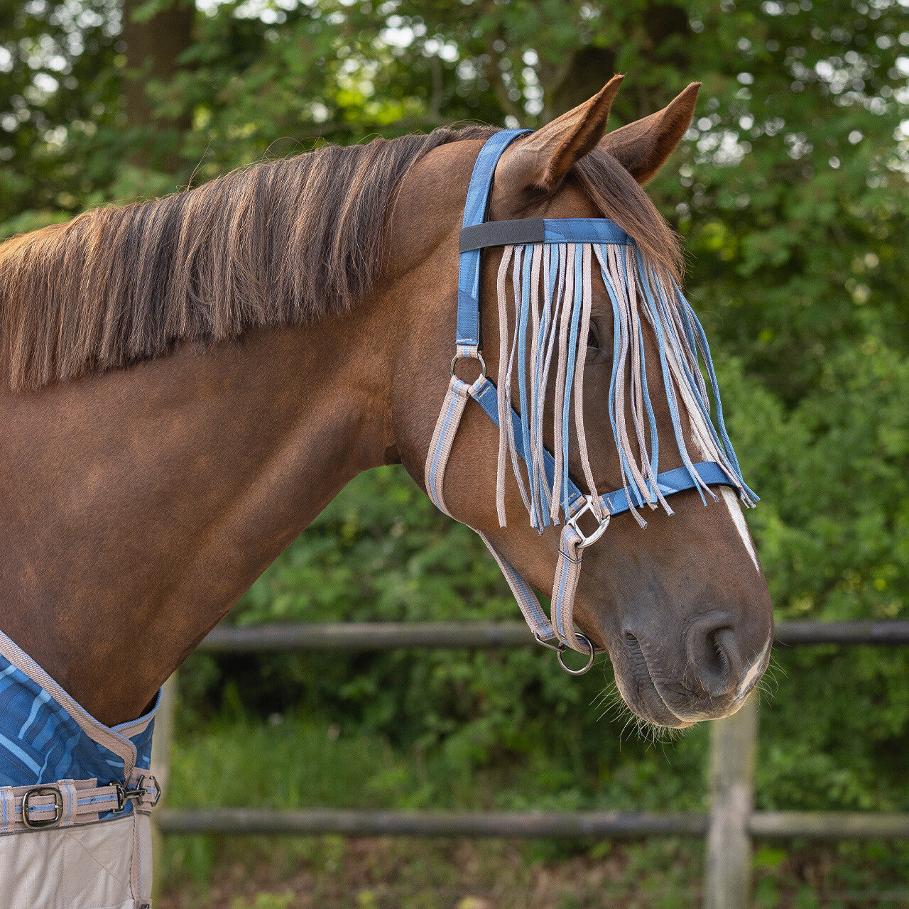 Vliegenfrontriem uit de zomercollectie! Je paard kan de vliegen zelf van zijn hoofd verjagen en ook is de frontriem gemakkelijk te bevestigen. Combineer deze frontriem met de halsters uit onze zomercollectie.