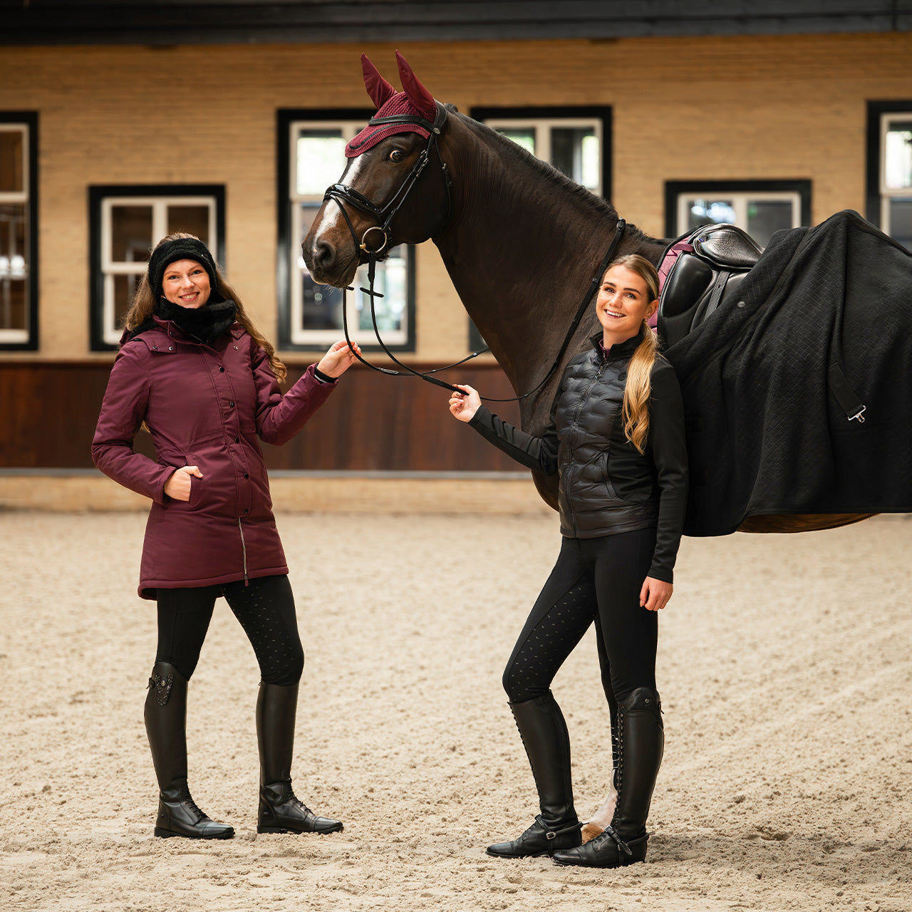 De Maelynn winterjas uit de wintercollectie heeft een capuchon die kan worden vastgemaakt om te voorkomen dat deze omhoog waait tijdens het rijden. De jas is voorzien van een warme voering aan de binnenkant en een elastische mouwafsluiting voor extra comfort, perfect voor koude dagen. Daarnaast is de jas uitgerust met een praktische tweewegrits en handige steekzakken.