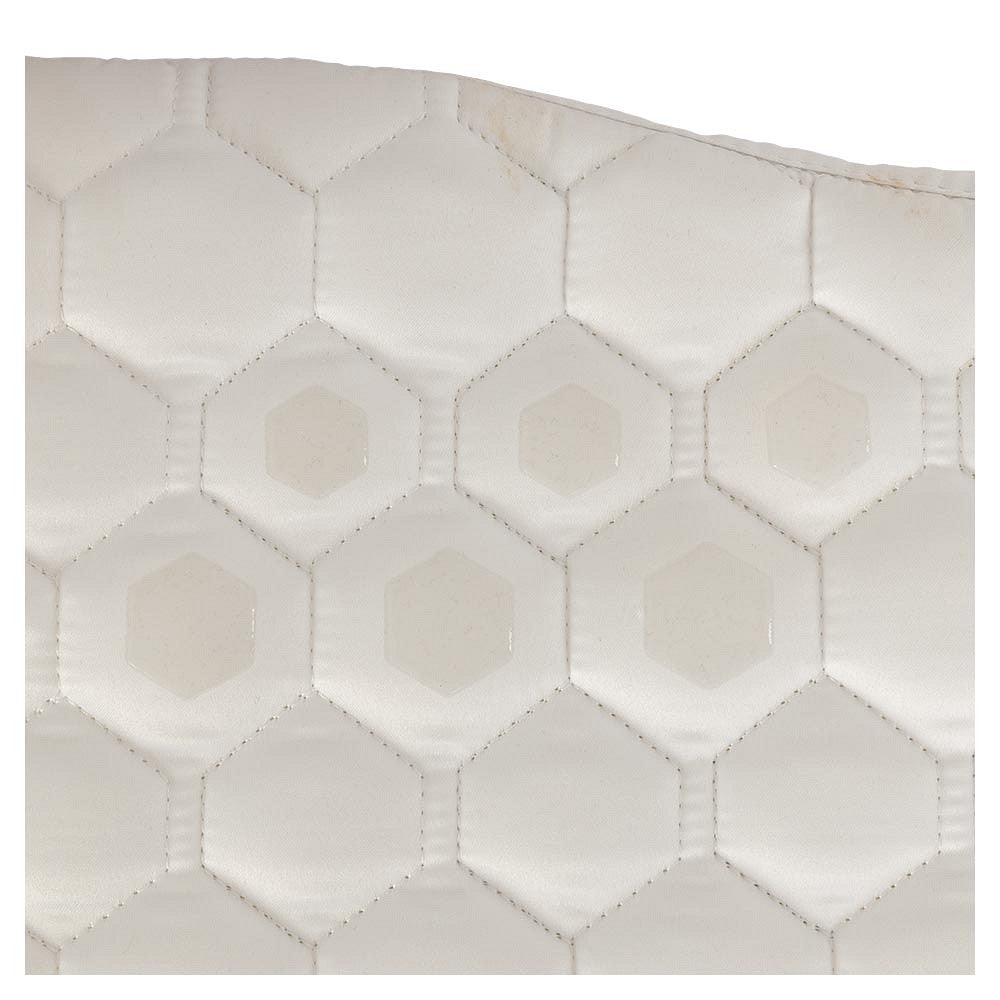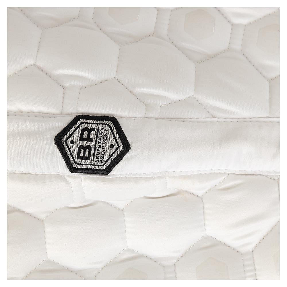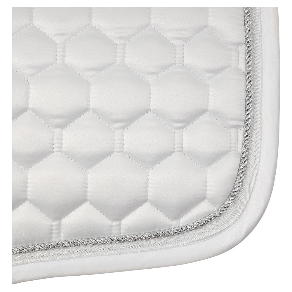 Dit luxe wedstrijdzadeldek is anatomisch gevormd voor een mooie pasvorm en bevat siliconen aan beide zijden zodat het zadel stevig op het dekje blijft liggen. De ademende voering zorgt voor een optimale luchtcirculatie waardoor de paardenrug koel blijft. De dikke vulling van 300g polyfill en 10 mm schuim zorgt voor een evenredige drukverdeling.