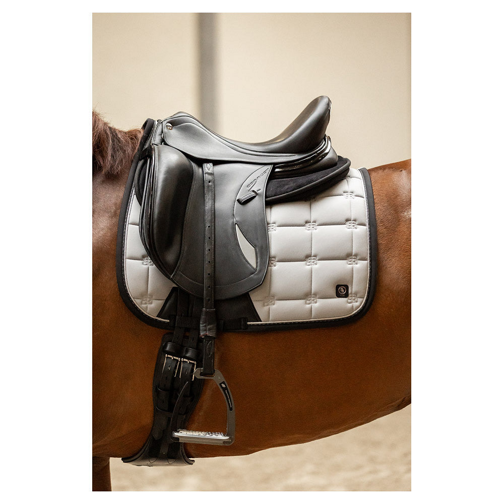 Het stijlvolle CLX zadeldek is vierkant gestept met BR logostiksels voor een unieke look en afgewerkt met twee subtiele biezen. Het zadeldek is uitgevoerd met verstelbare zadel- en singellussen met klittenband en een extra versteviging van synthetisch leder bij de singellus