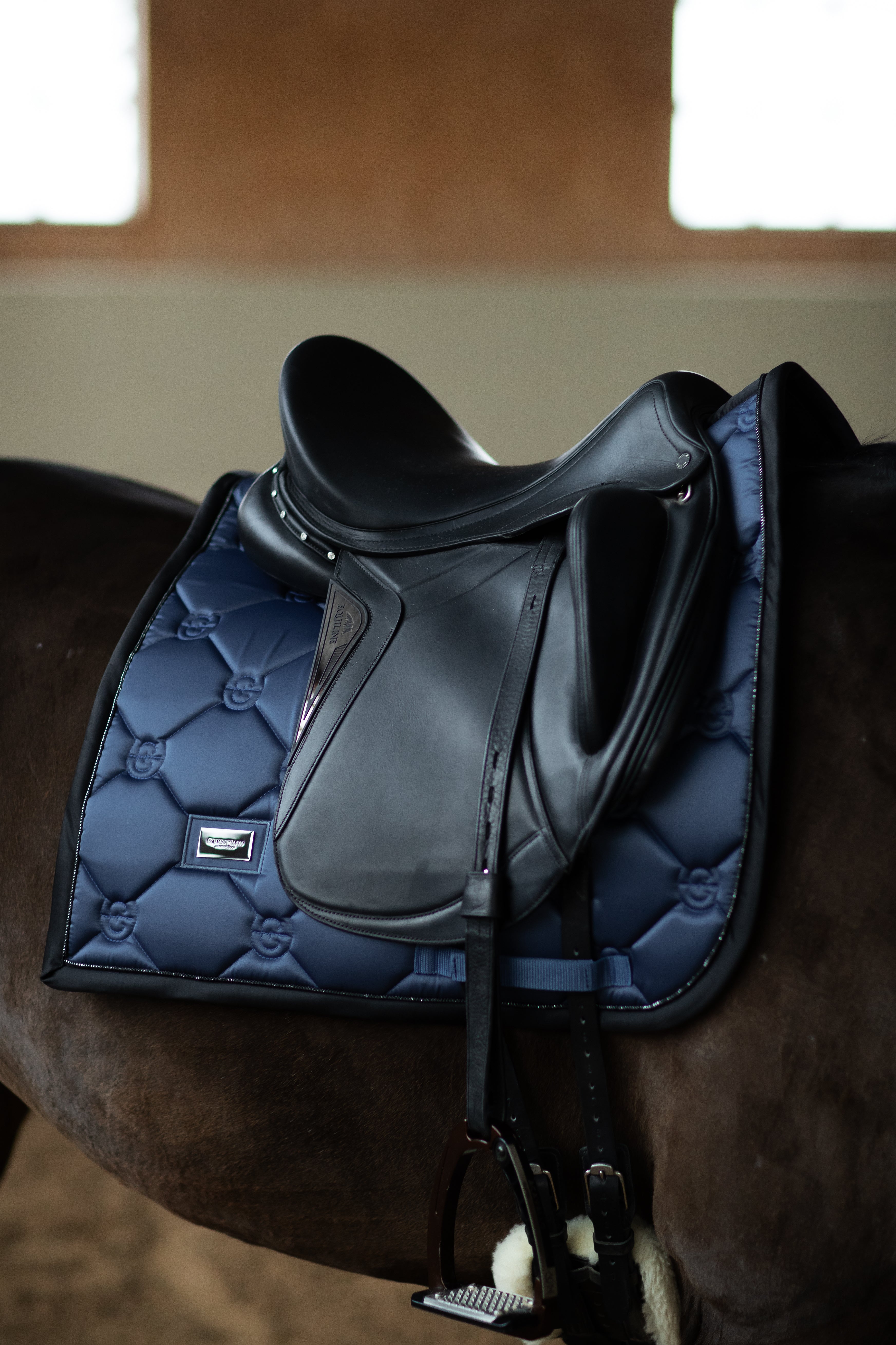 Een elegant zadeldekje in een denimblauwe kleur met zwarte details. Versierd met het Equestrian Stockholm embleem in het zwart. Het materiaal is behandeld met High IQ cool comfort, wat het zadeldekje sneldrogend en vochtafvoerend maakt. Dit helpt je paard langer droog en fris te blijven. Stijlvol te combineren met andere items uit onze Dark Venice-collectie voor een complete en modieuze look.