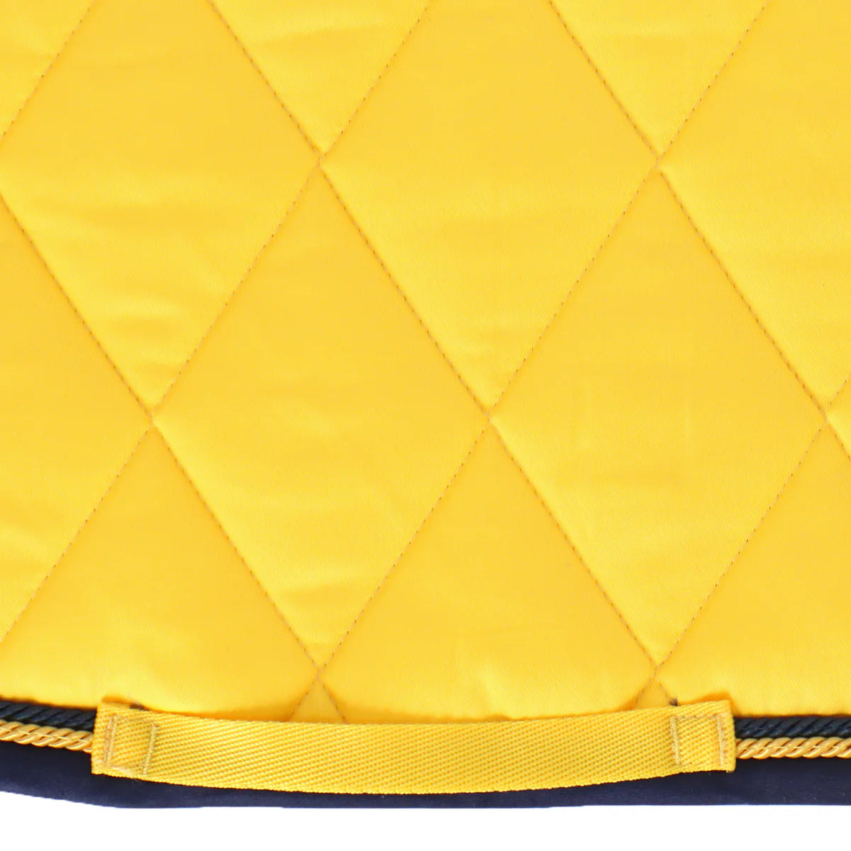 Het zadeldek is gedecoreerd met één of twee koordbiezen en bevat een verstelbare zadellus met klittenband.